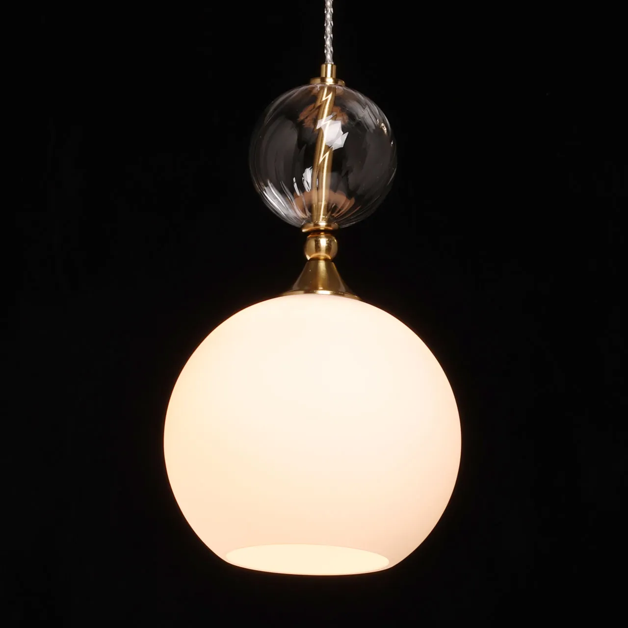 Основание/ металл/латунь Плафон/ стекло/ белое Декор/ стекло/ прозрачное