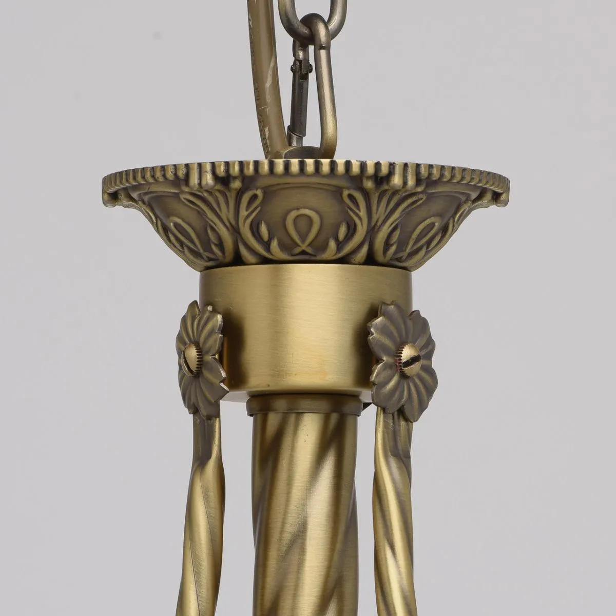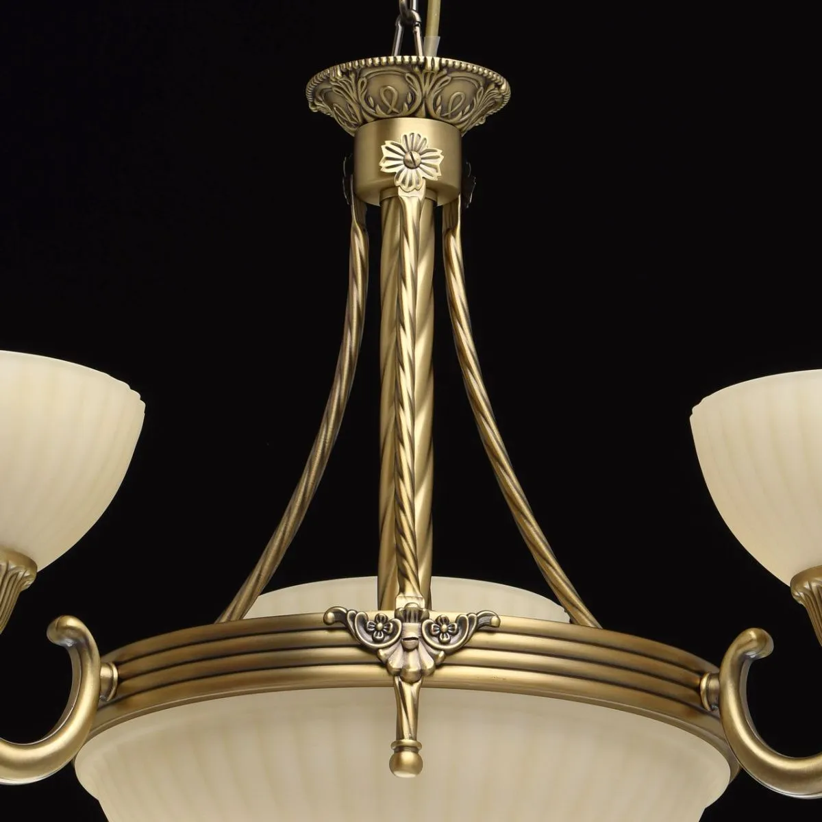Алюминиевое основание цвета античной бронзы, стеклянные плафоны цвета ванили.