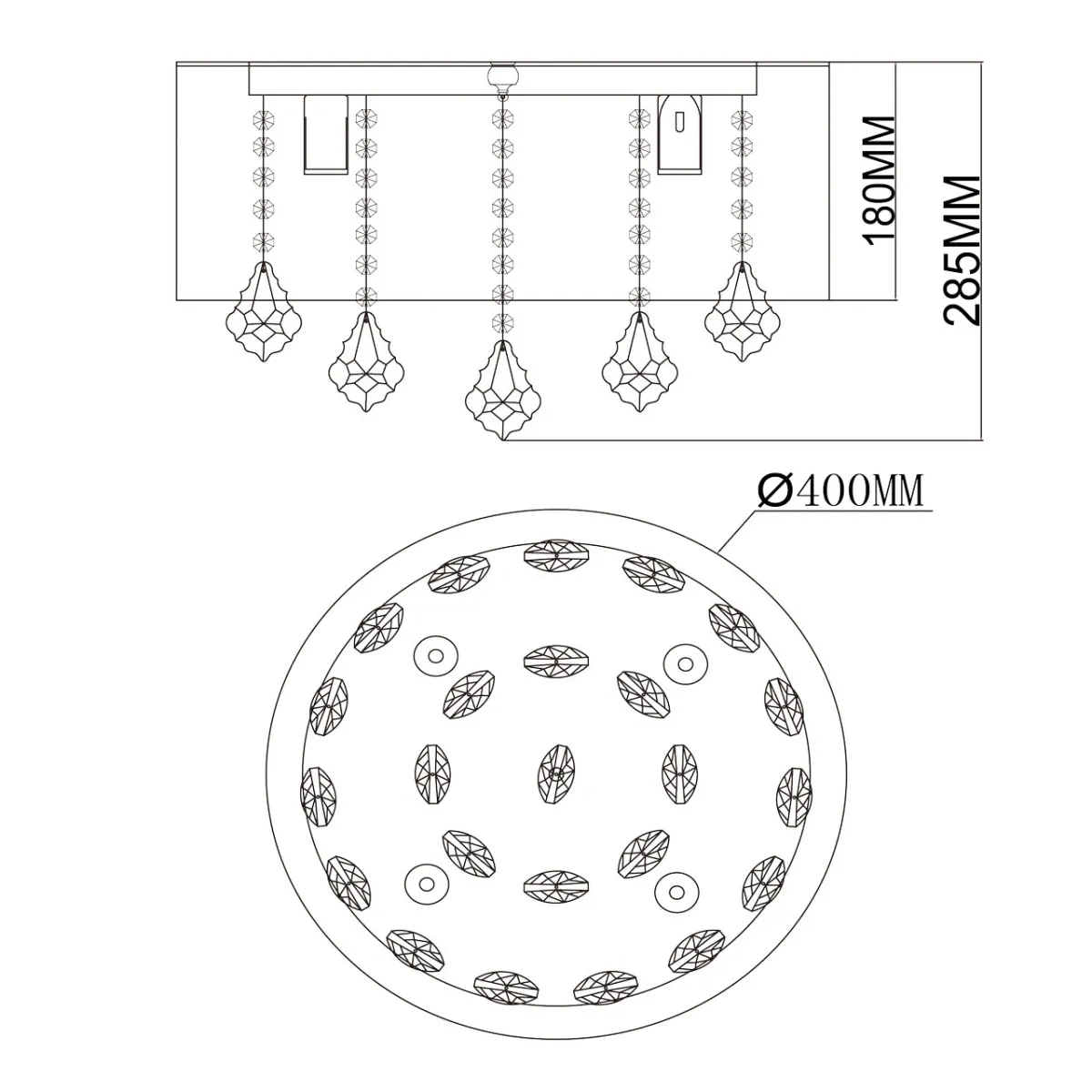 Основание/металл/хром Плафон/органза/белый Декор/хрусталь/прозрачный