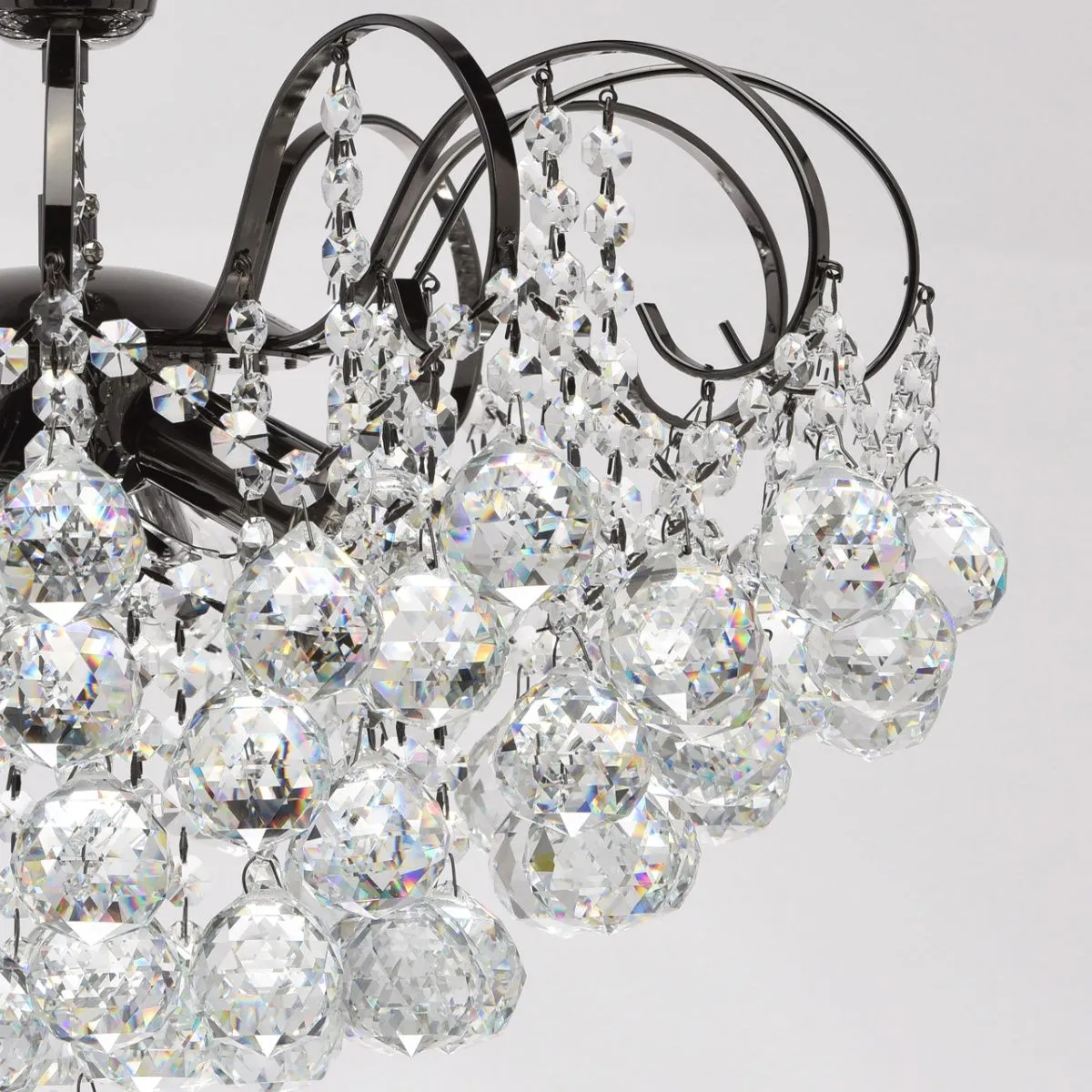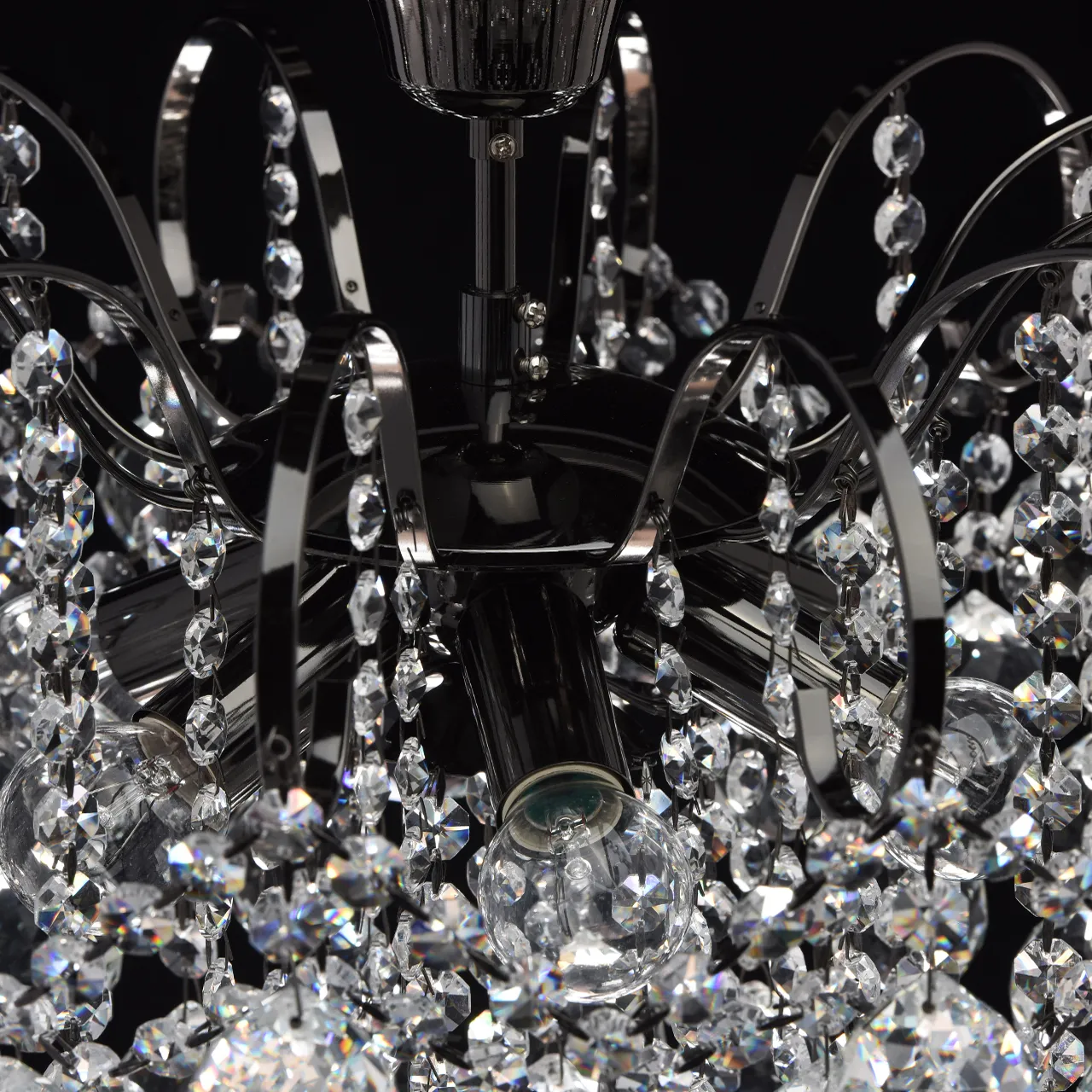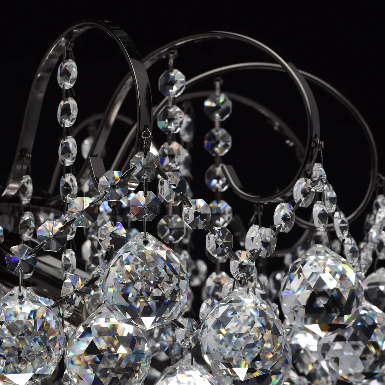 Металлическое основание цвета никеля, декоративные подвески из хрусталя.